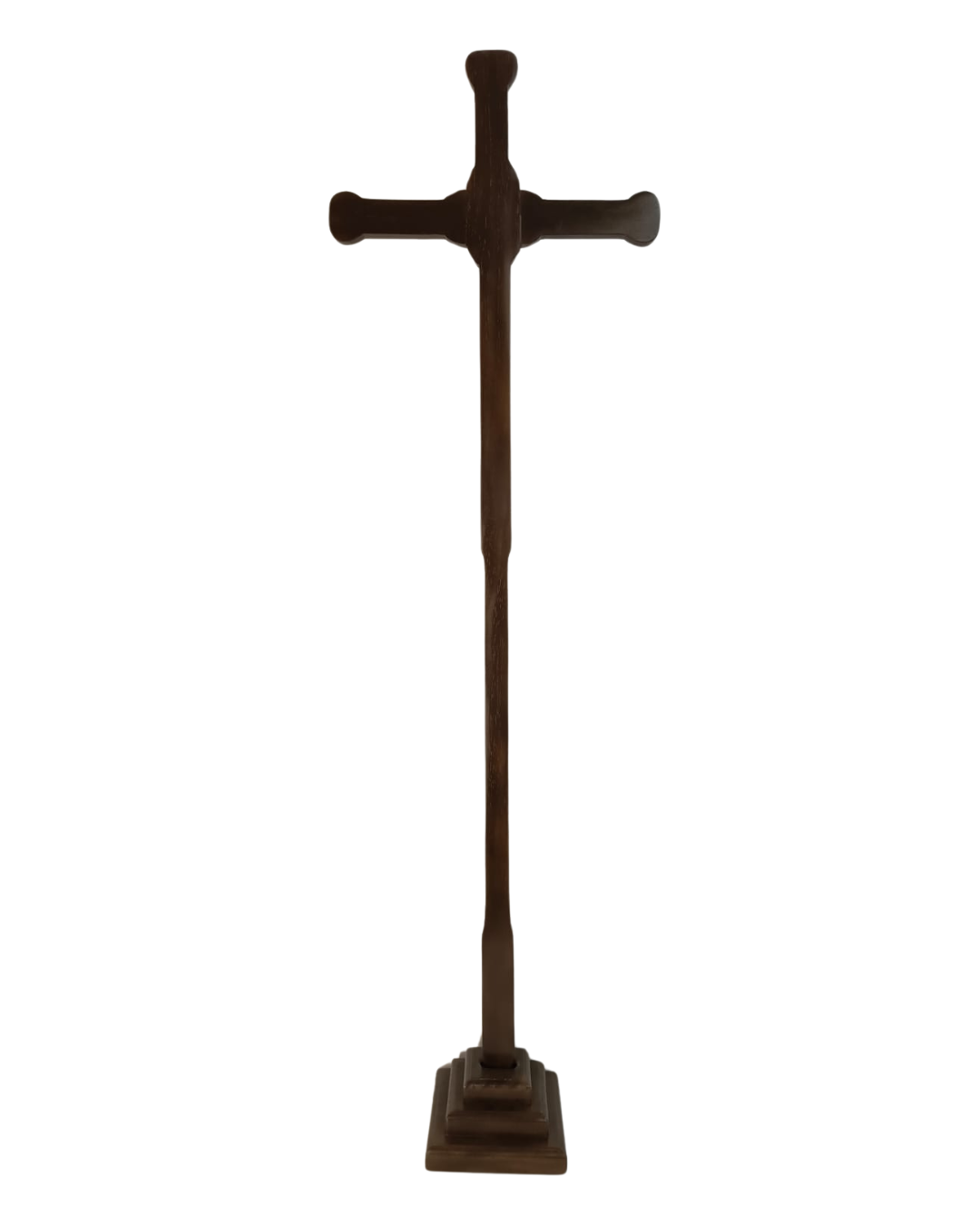 A cruz processional é muito utilizada em práticas devocionais e votivas. Pensando nas procissões demoradas, especialmente nas orações quaresmais da Via Sacra, a Sacro Legno apresenta a cruz processional com base de chão. Produzida em madeira maciça de reflorestamento, acabamento em verniz tonalizado, leve, curvas e formato marcantes,.. Ela ainda conta com base de chão, produzida também em madeira, com espaço para encaixar a cruz e mantê-la em pé.
