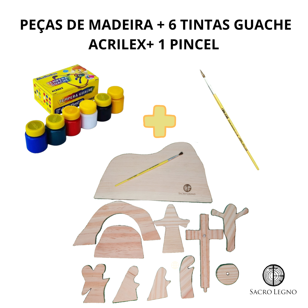 A educação e catequese das crianças é um desafio cada dia mais presente na sociedade. Pensando nisso a linha de produtos “para colorir” apresenta o “Páscoa para Colorir”, uma forma dinâmica e intensamente sensorial de apresentar o sentido da páscoa cristã para nossos pequenos. O kit composto por 11 peças de madeira maciça para que a criança possa pegar na mão sem medo de quebrar e brincar muito enquanto colore com suas cores preferidas. Junto com o kit também está um jogo de tintas atóxicas de 6 cores da acrilex e pincel.